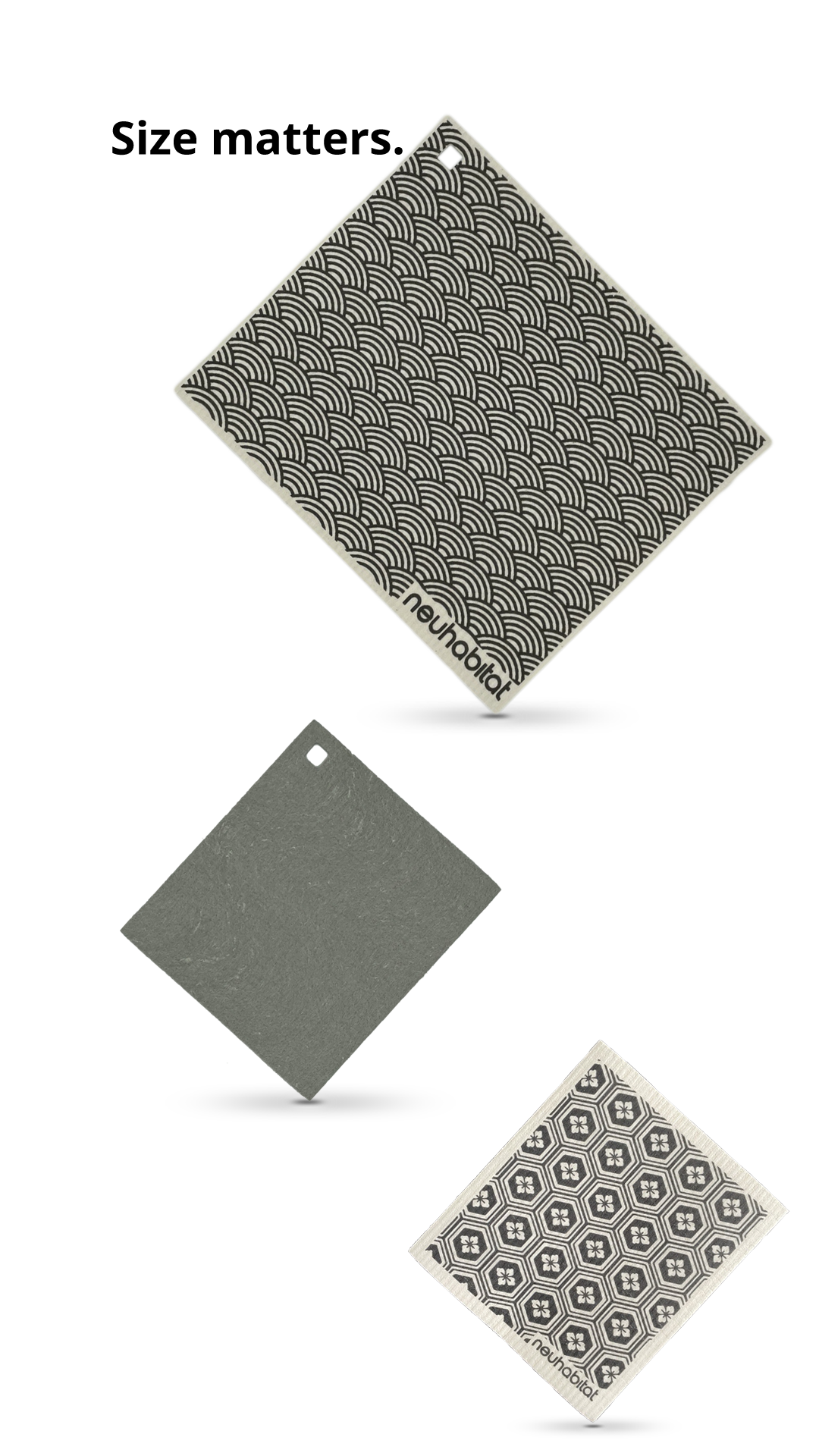 Today, the Swedish dishcloth comes in many names, colors, sizes, and printed designs. Some may call it Euro dishcloth, while others, the Swedish sponge, but we like to simply call it sponge cloth (for practical reasons). At Neuhabitat, we procure our sponge cloths from Germany and have them printed and packed in China. We supply the sponge cloths in 2 sizes with various printed designs to suit specific needs in the kitchen or generally any home setting.